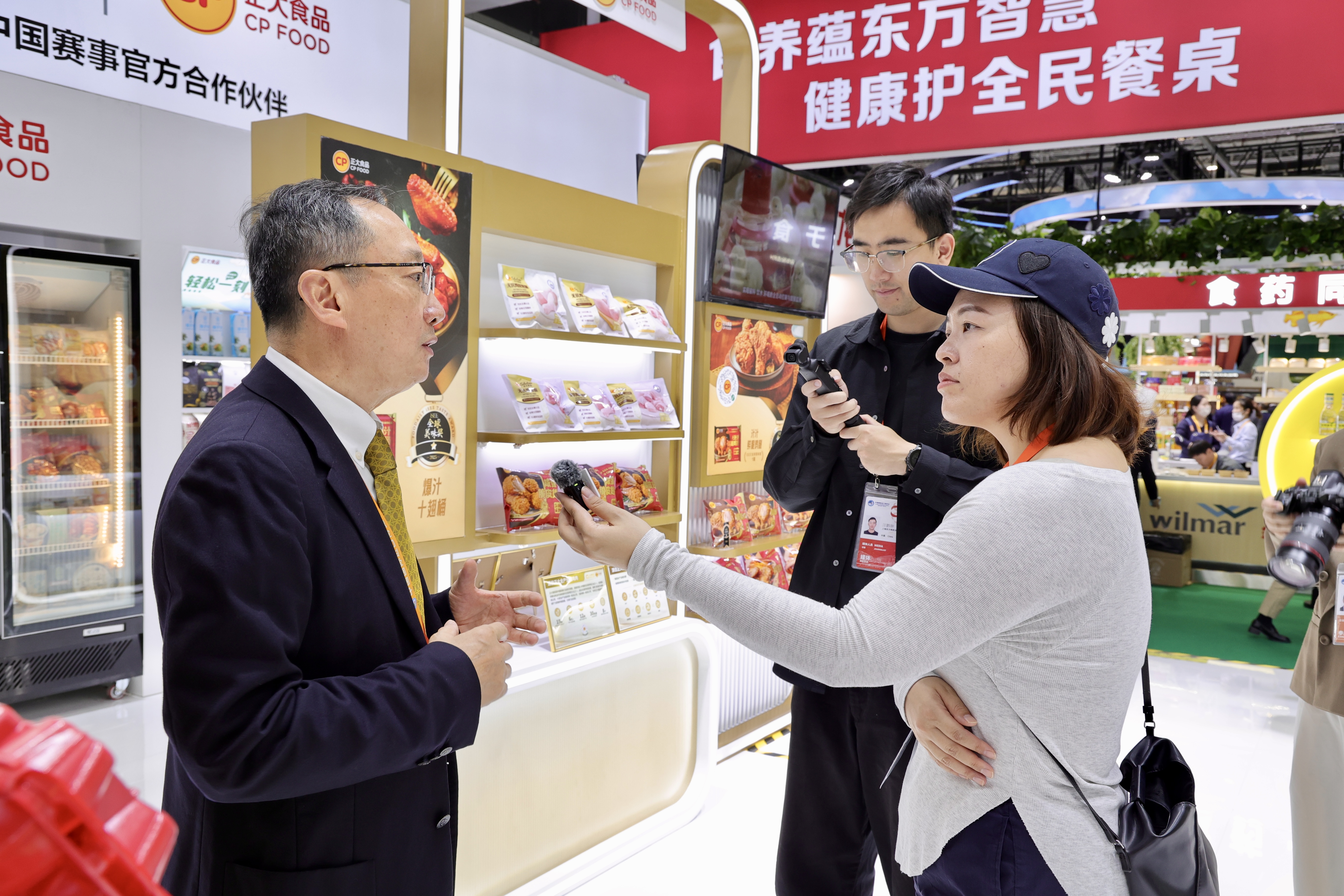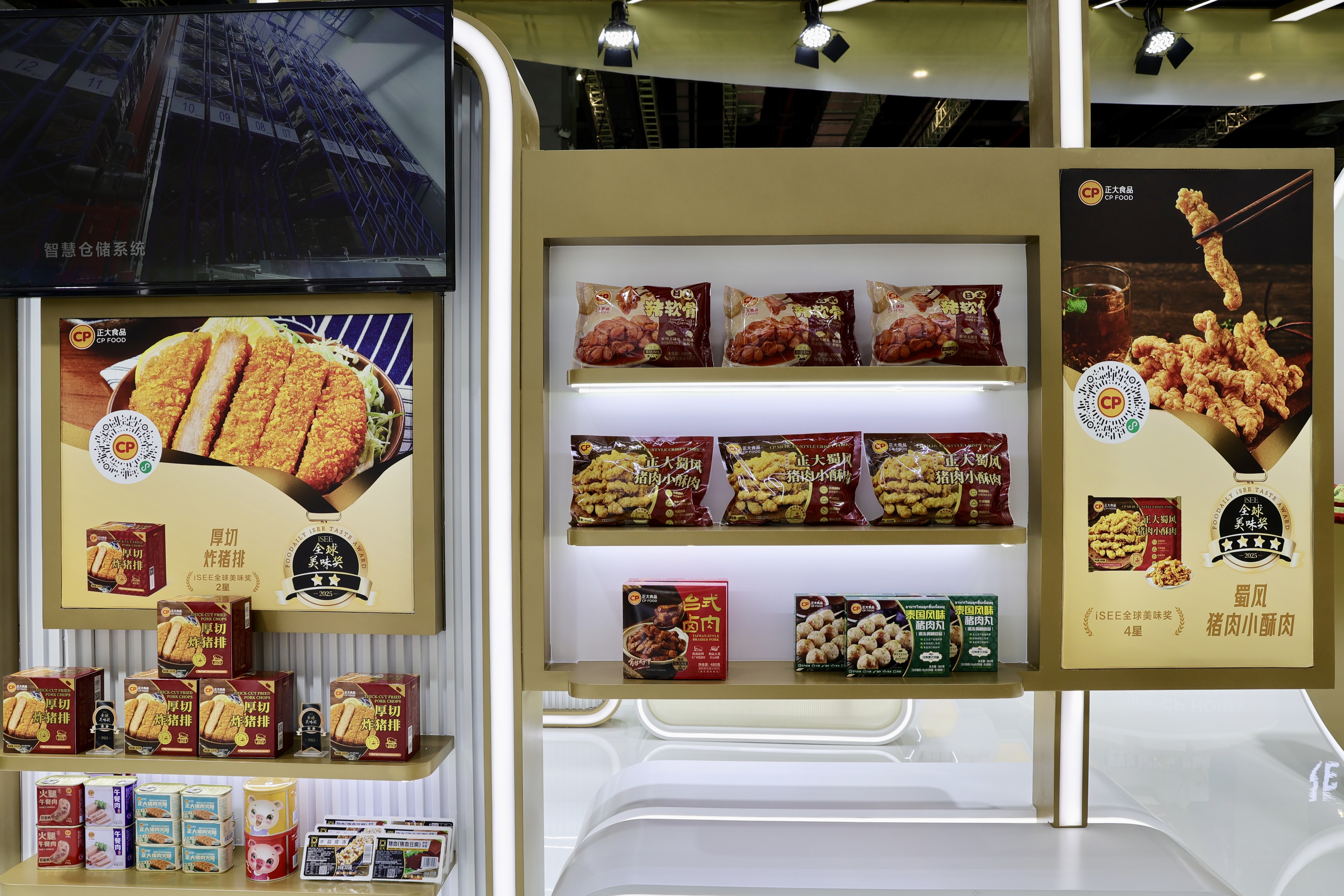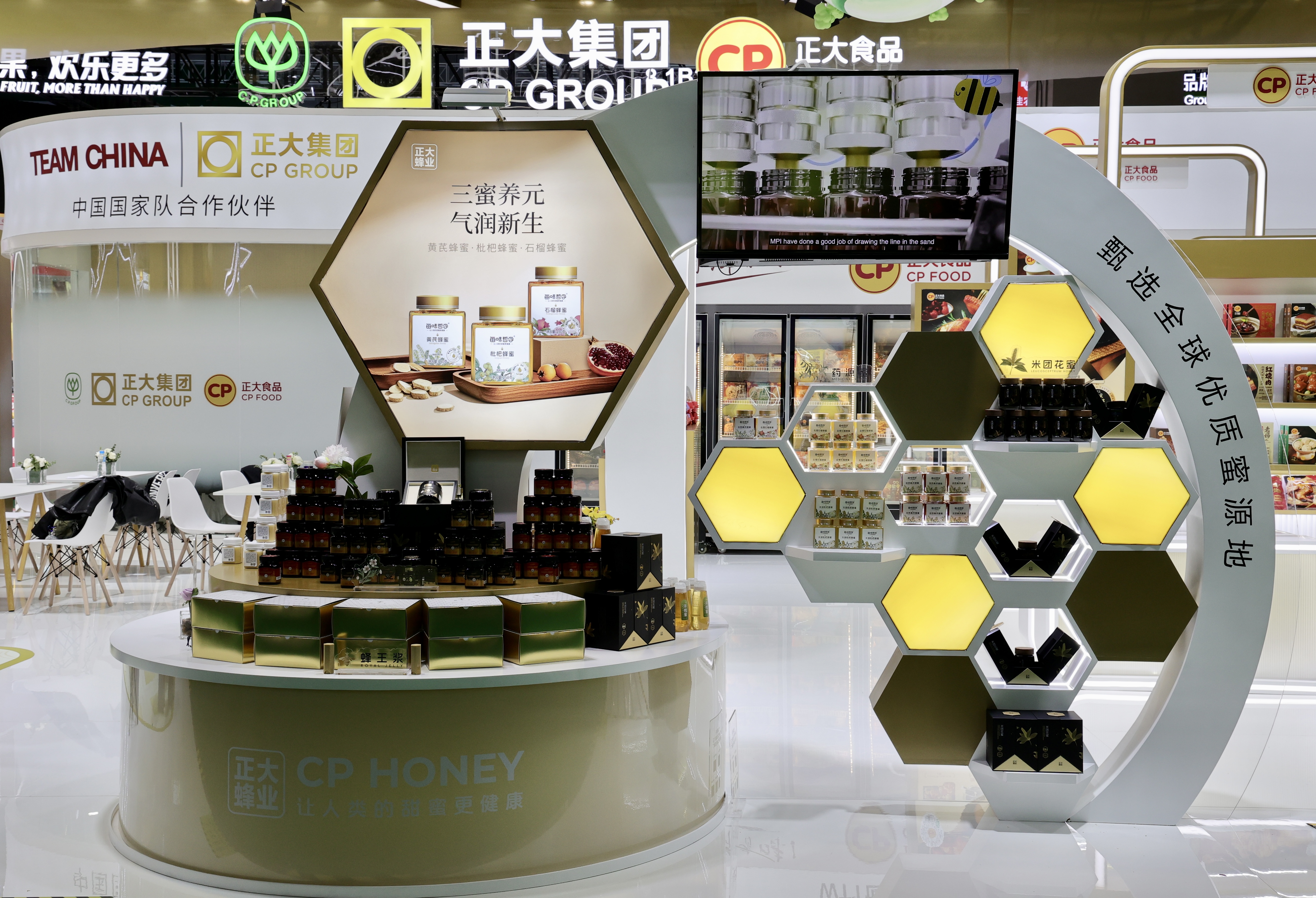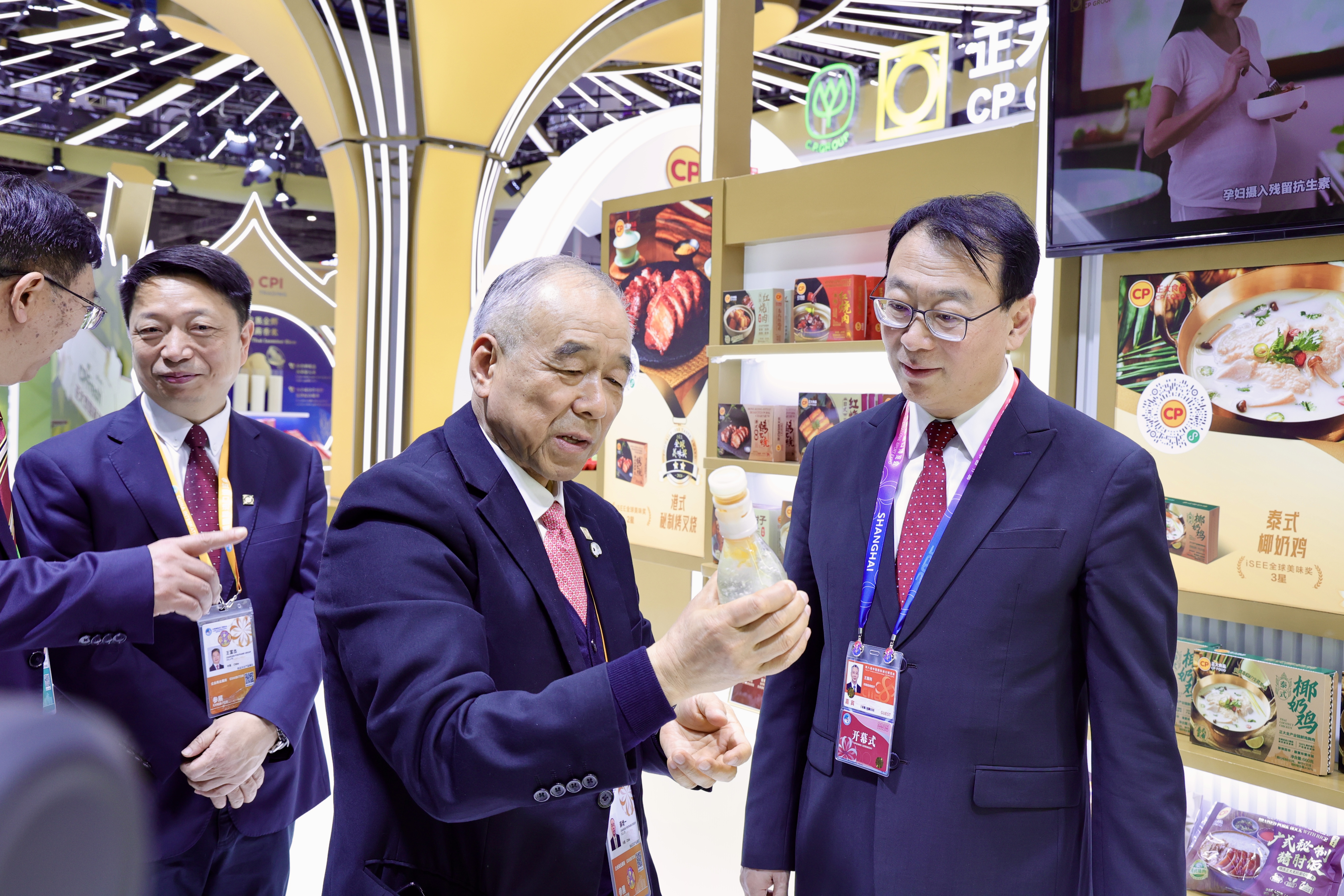 本屆進博會上,正大集團組織20個業務板塊參展,共231款產品,涵蓋了正大泰國大蝦、CP Fresh泰國水果、醬料產品、泰國大米、預包裝食品、主食類、油炸小食、水產、香腸、雞蛋、豬肉、雞肉、榴蓮制品、鱷魚產品、水飲、休閑零食、蜂蜜、紅酒、茶葉等。