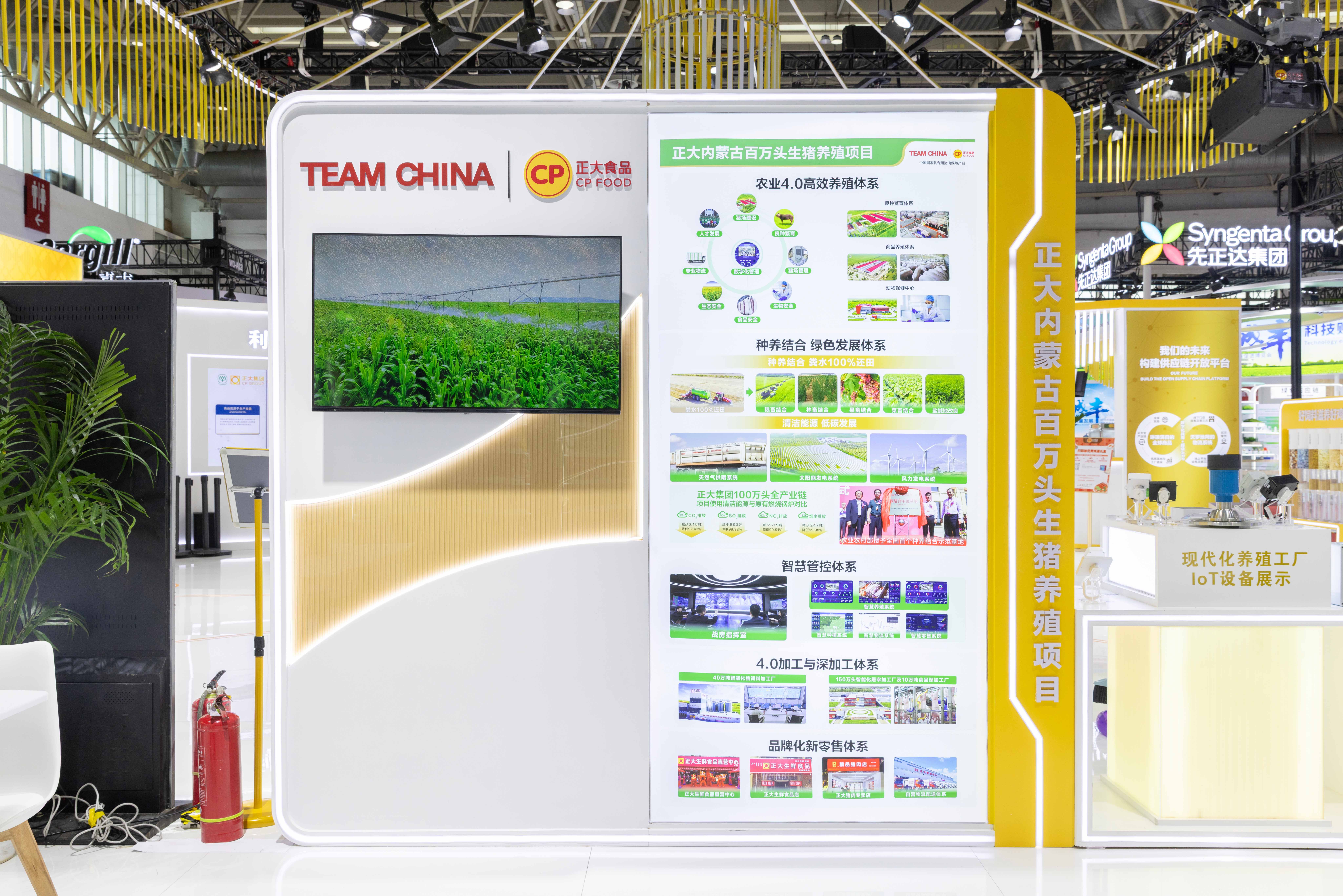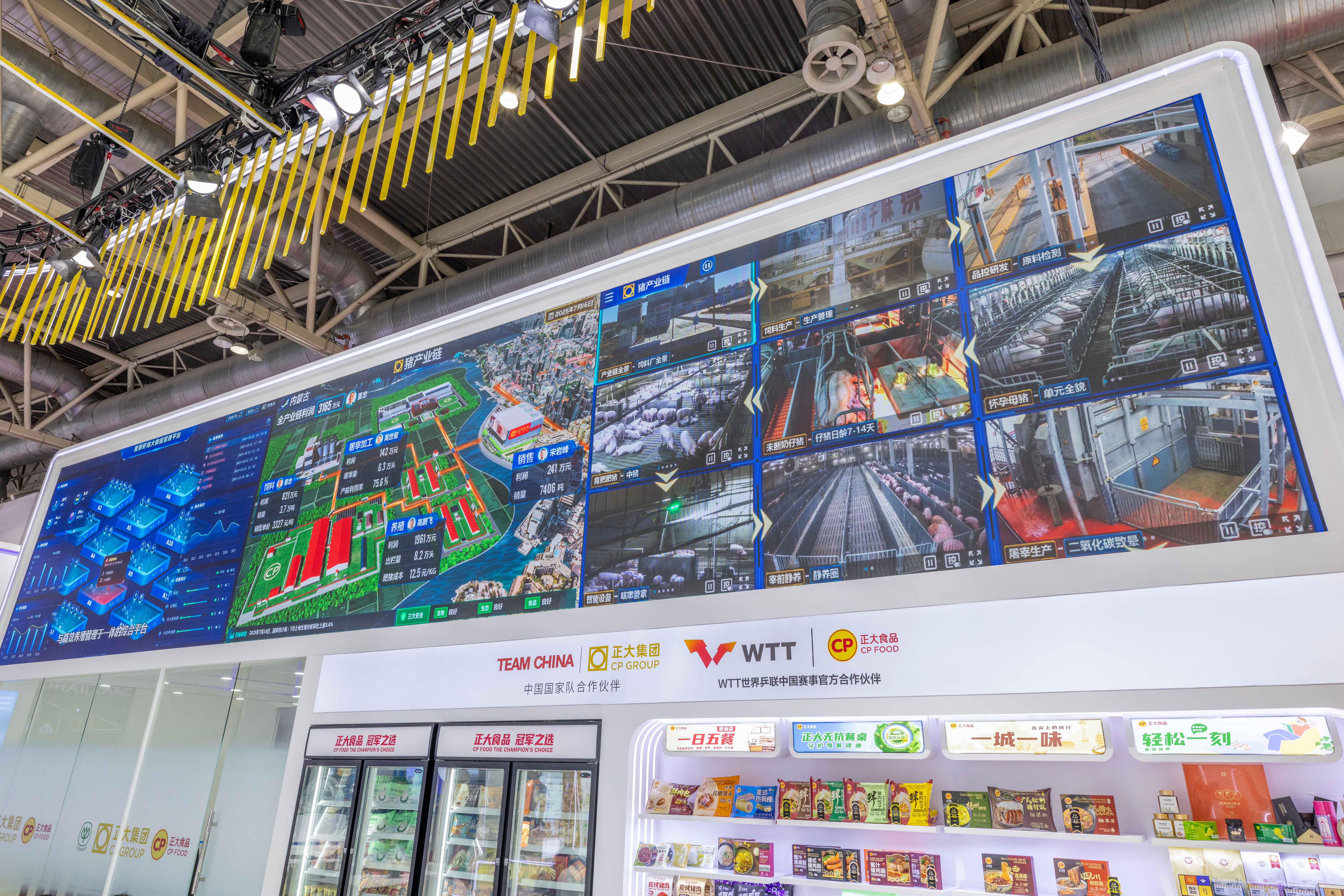 正大展館中央的智慧大屏呈現正大集團核心中樞——“數字戰房”數據中心的強大功能。觀眾可直觀看到全產業鏈各環節的運行畫面與數據流,實現從源頭到終端的精準監控與管理。重點展示了利用IoT設備對養殖場環境、健康指標的監測,實現科學養殖決策。