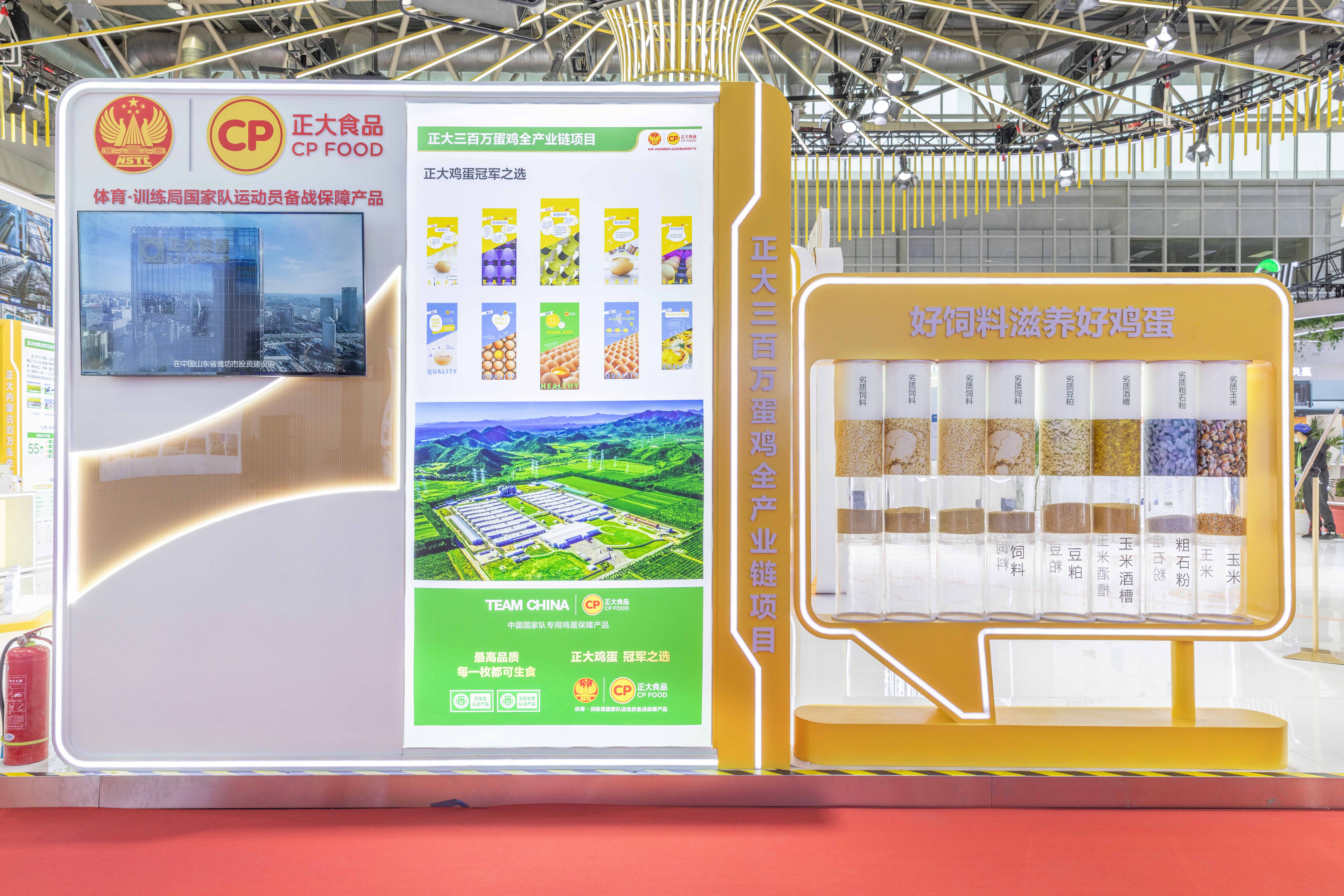 正大300萬蛋雞全產業鏈項目是集團“四位一體”模式的典范。政府整合資源、銀行提供資金支持、農民以土地入股獲得租金分紅與就業崗位、企業負責現代化運營管理,該模式成功重塑農業生產關系,實現“小農變大農”的共同富裕目標。現場還陳列了通過喂養OMEGA-3、葉黃素、富硒等功能性飼料生產的特色營養雞蛋,并利用VR技術播放雞蛋科普視頻,讓來訪嘉賓沉浸式學習雞蛋知識。