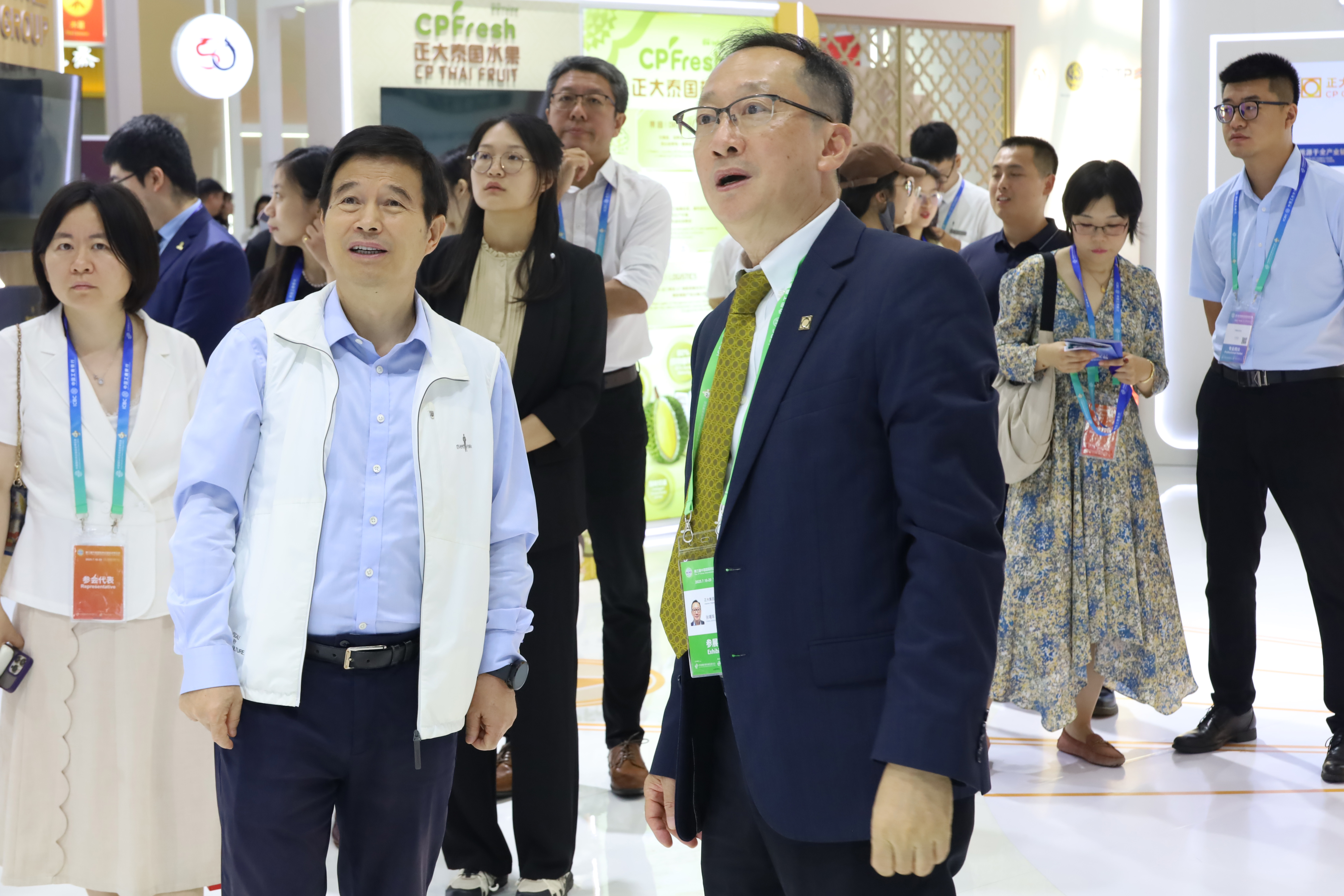 農業農村部對外經濟合作中心一行參觀正大展館,王恩川副總裁(右一)熱情接待來賓。