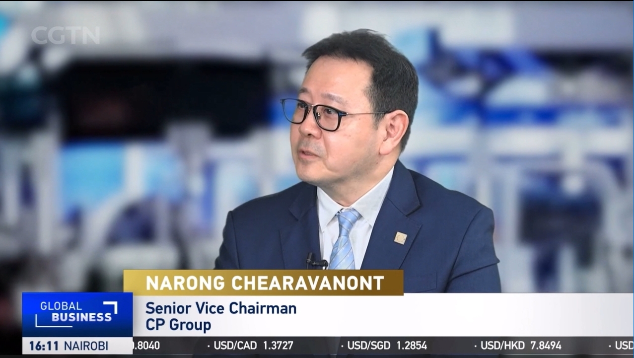 正大集團謝明欣資深副董事長接受中國國際電視臺CGTN記者采訪。
